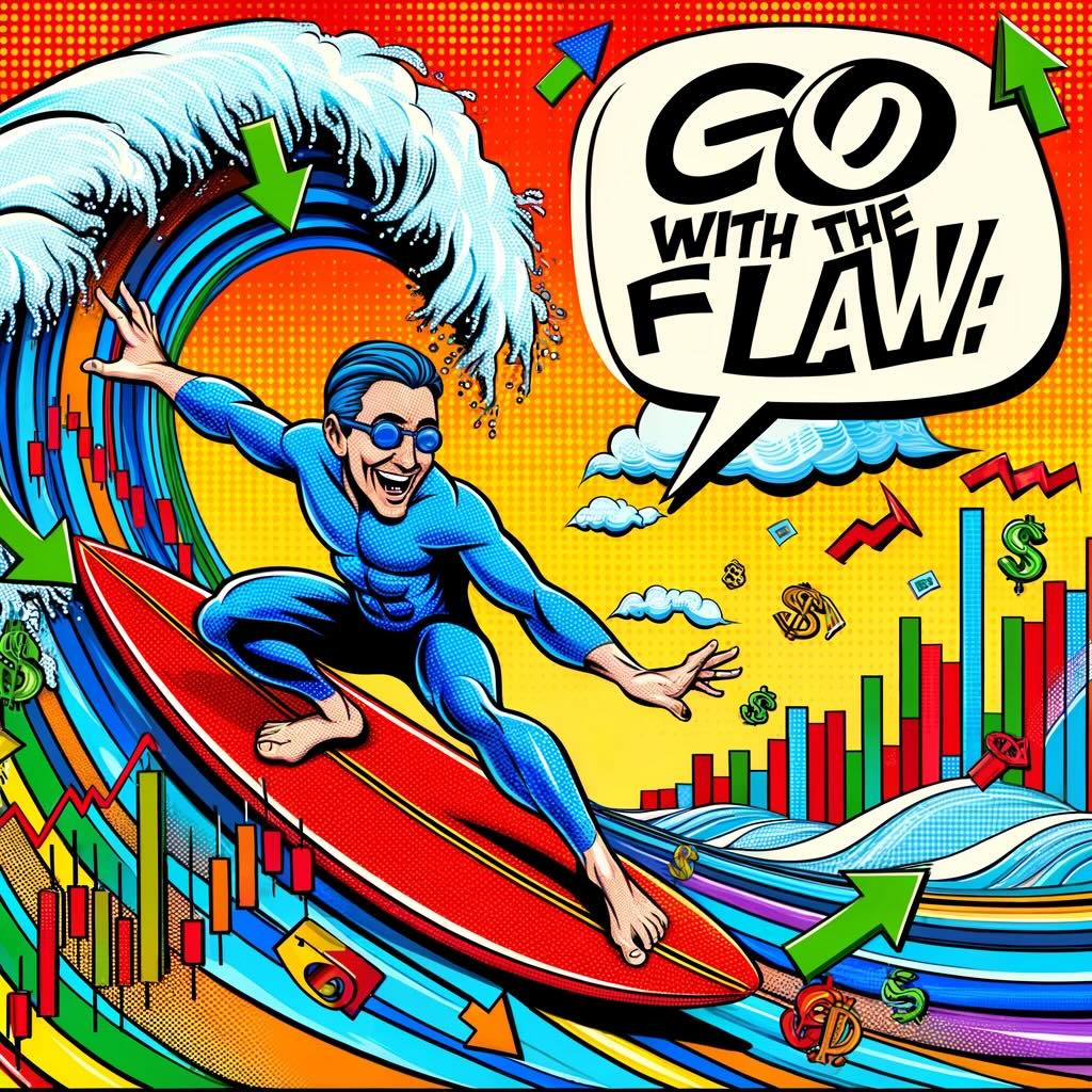 The cardinal rule of trend following is encapsulated in the maxim: “Go with the flow.” This principle advocates for aligning trades with the prevailing market trend. The rationale is straightforward yet profound: it is more probable to garner profits by riding the existing momentum of the market rather than going against it. By identifying and aligning with uptrends or downtrends, traders increase their chances of success, capitalizing on the market’s inherent tendencies to persist in a particular direction. This approach eschews the precarious endeavor of predicting market reversals or timing market tops and bottoms, instead embracing the pragmatic strategy of trend alignment.
